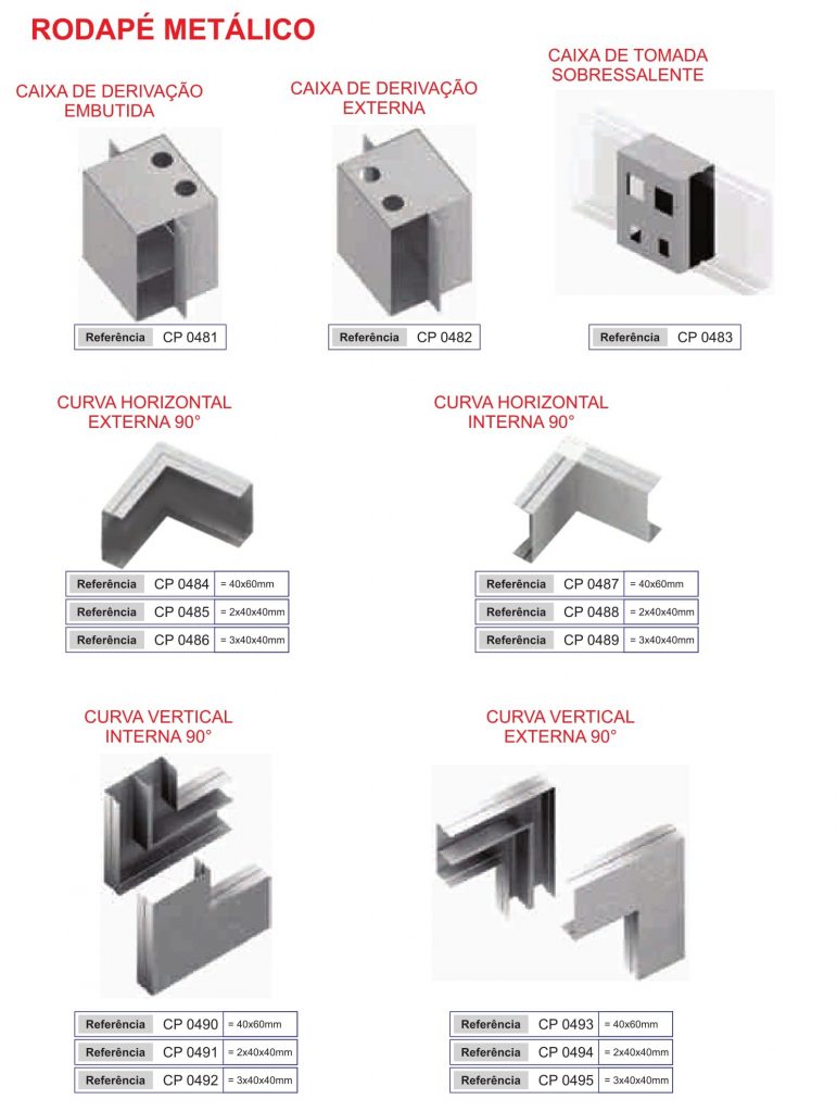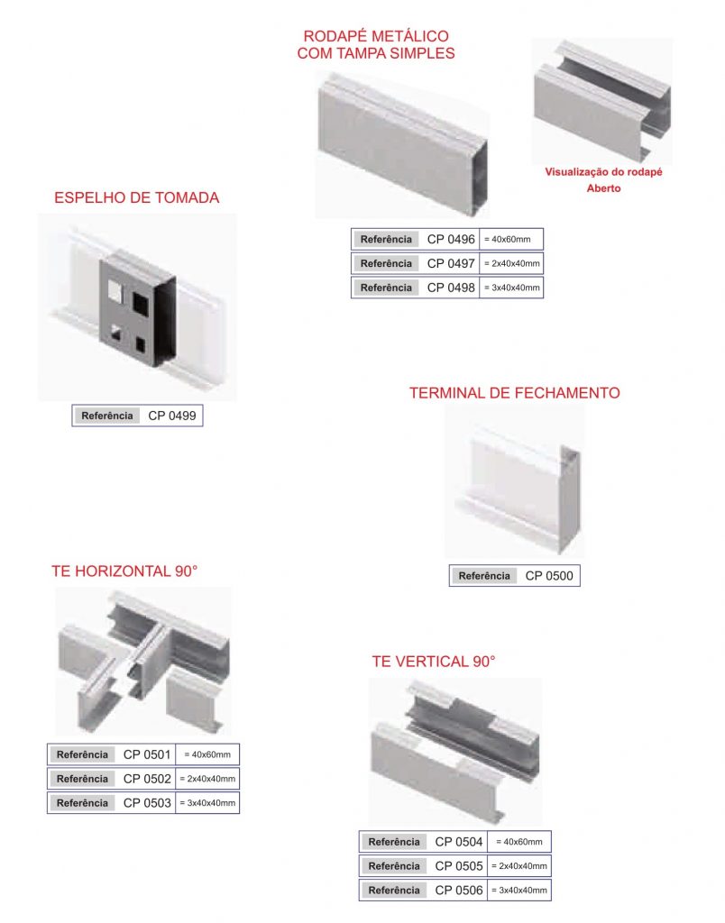 O rodapé metálico é um sistema aparente, fabricado em chapa metálica para condução de fios e cabos de dados, energia e telefonia.